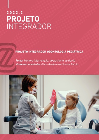 2 0 2 2 . 2 PROJETO INTEGRADOR PROJETO INTEGRADOR ODONTOLOGIA PEDIÁTRICA Tema: Mínima intervenção: do paciente ao dente Professor orientador: Diana Gaudereto e Suzane Paixão