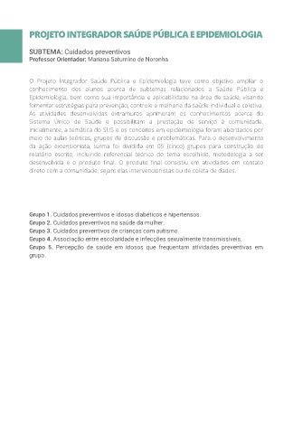 O Projeto Integrador Saúde Pública e Epidemiologia teve como objetivo ampliar o