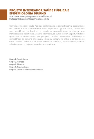 No Projeto Integrador Saúde Pública e Epidemiologia os alunos tiveram a oportunidade
