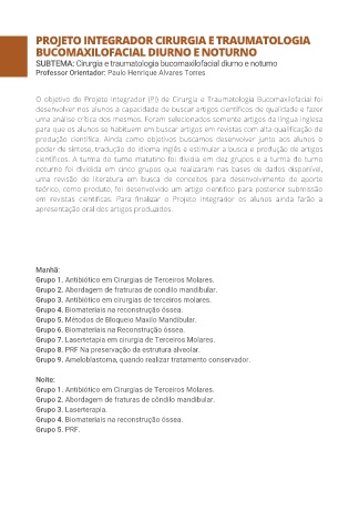 O objetivo do Projeto Integrador (PI) de Cirurgia e Traumatologia Bucomaxilofacial foi