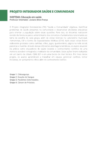 O Projeto Integrador Extensionista (PIE) “Saúde e Comunidade” objetivou identificar