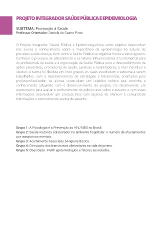 O Projeto Integrador “Saúde Pública e Epidemiologia”teve como objetivo desenvolver