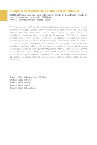 O Projeto Integrador (PI) “Saúde e Comunidade” teve como objetivo principal realizar