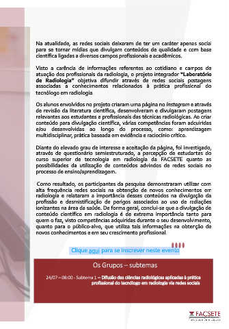 de Radiologia” objetiva difundir através de redes sociais postagens