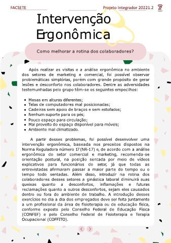 intervenção ergonômica, baseada nos preceitos dispostos na